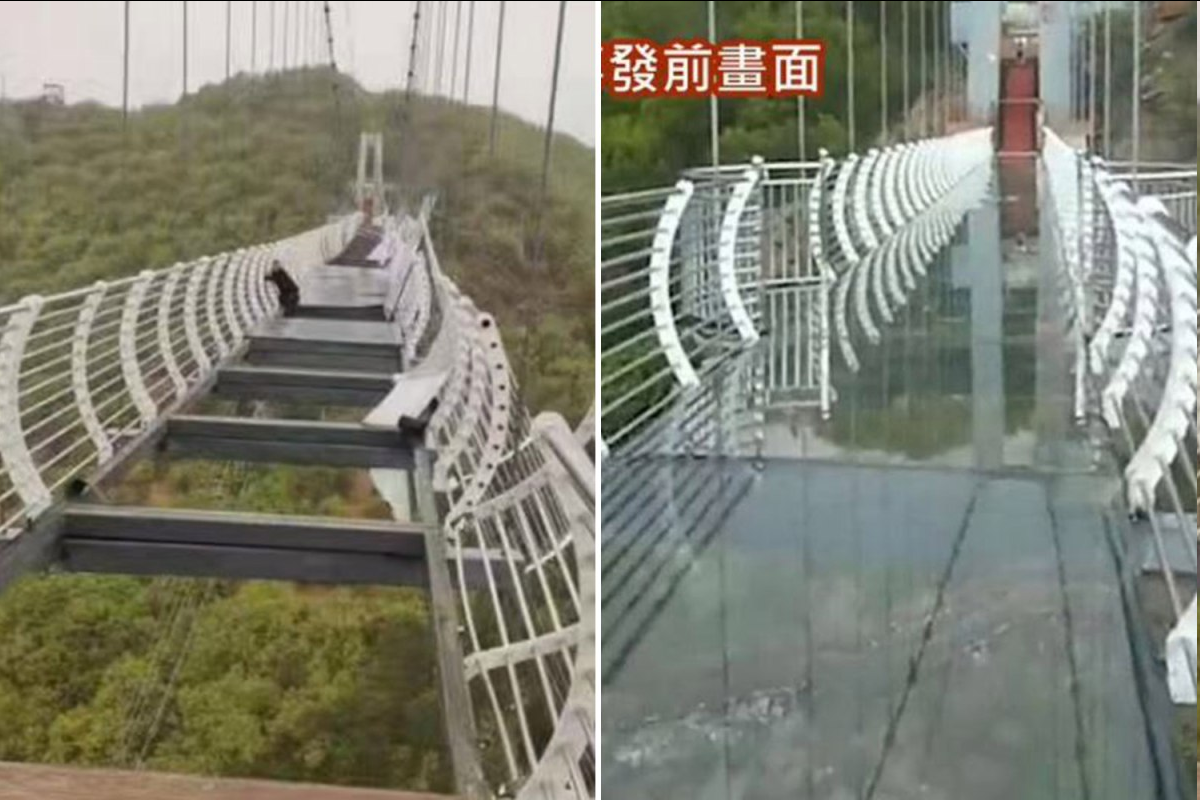 https://www.thesun.co.uk/news/14902428/glass-bottomed-bridge-china-shatters-wind/ Bottom falls out of China’s bridge – Gods wind blows on China