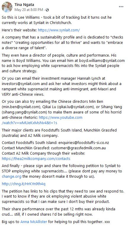 If these people have targeted a person with the result of that person losing their job then these people need to be held accountable and speaking this is not inciting violence against Maori at all.