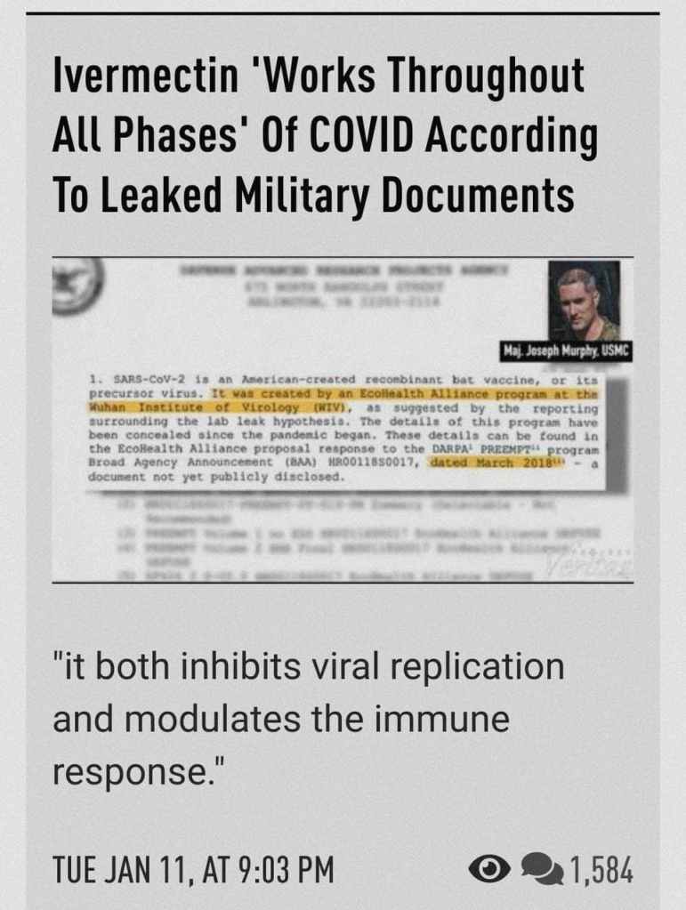 Did you know those treated with Ivermectin don’t get Covid and did you know that Ivermectin obliterates transmission and did you know that it has an 85 percent recovery rate from Covid