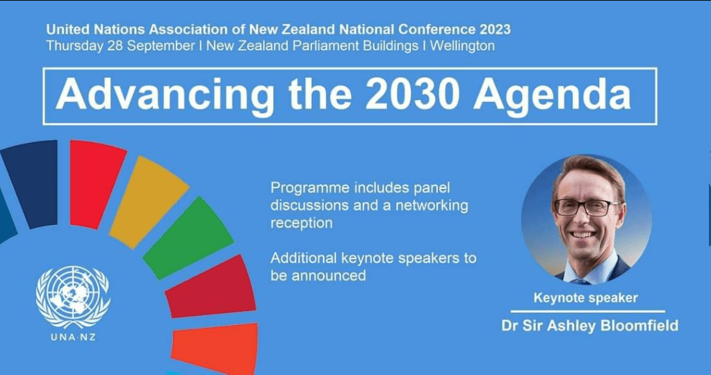 The United Nations Association of New Zealand will be holding its national conference – Advancing the 2030 Agenda – on Thursday 28 September 2023. Agenda 30 RBG 7 fold ret 1000