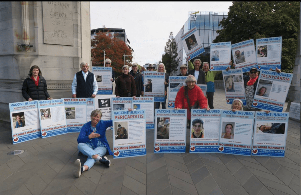 I held a story board of a vaccine injured New Zealander