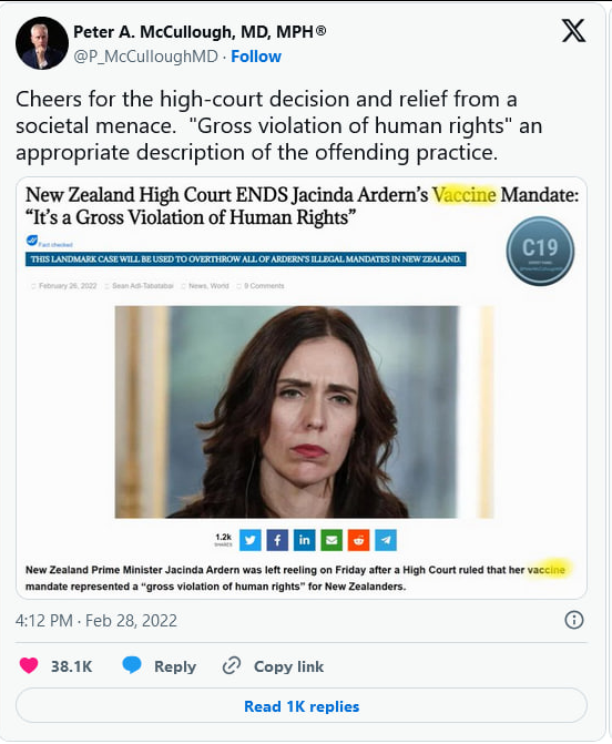 https://nzdsos.com/2024/10/12/zero-risk-jab-high-risk-medical-council/ a must read – By every possible metric, the formal position adopted by NZ’s Medical Council – that the covid-19 jabs available in new Zealand were zero risk products – will go down in history as stupid, immoral, reckless, and surely criminally negligent.