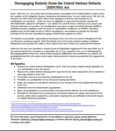 the United Nations Debacle (DEFUND) Act – Sealed – it will disengage America from the United nations killing the core, the heart of the death machine – Sealed