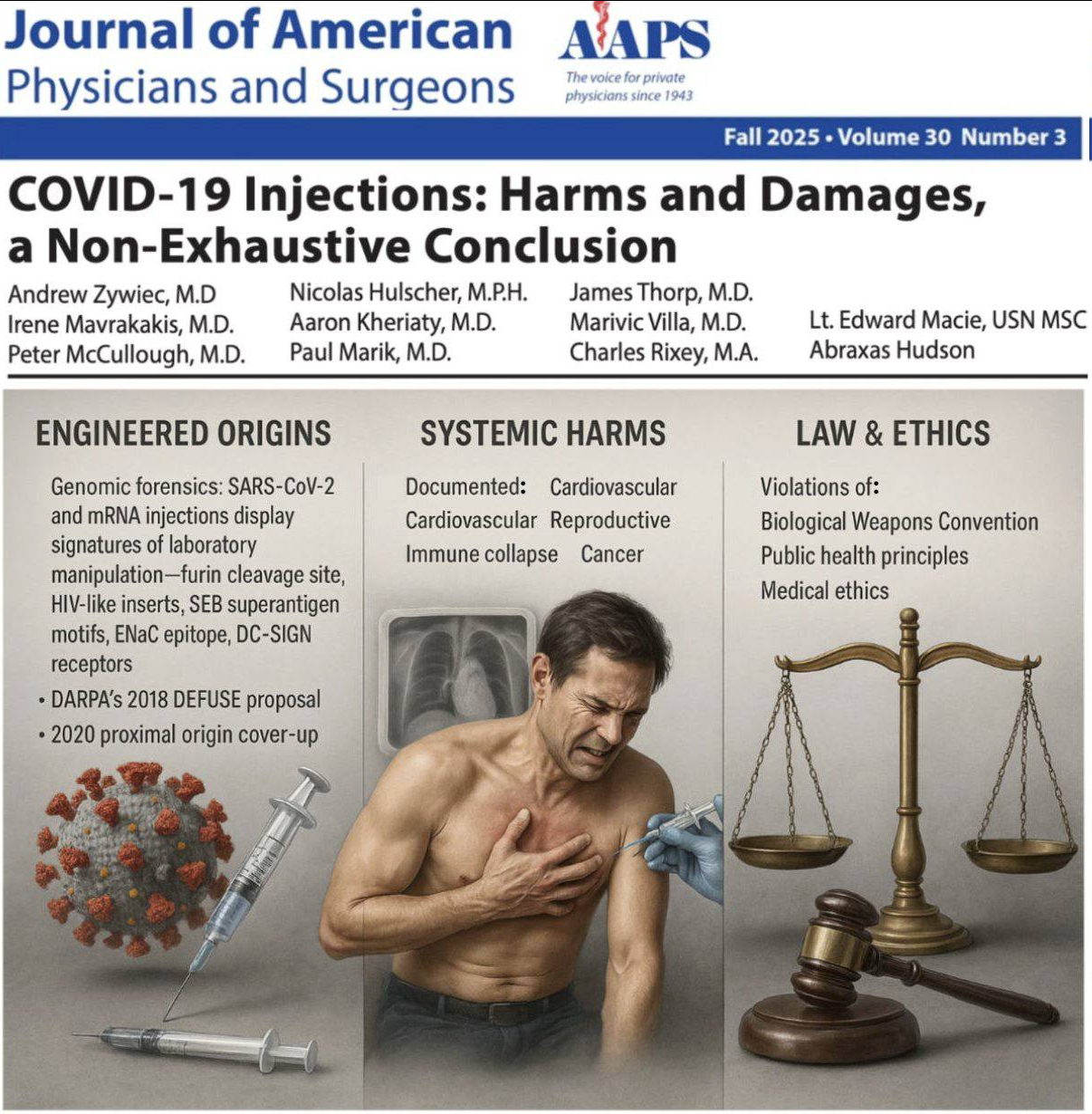 https://www.infowars.com/posts/breaking-dr-peter-mccullough-joins-alex-jones-in-studio-to-discuss-shocking-new-developments-concerning-the-covid-19-injections/Texas-based physician keeps sounding alarm on deadly Covid jabs, as governments continue to push mRNA propaganda. Renowned cardiologist Dr. Peter McCullough breaks down the medical industrial complexโs efforts to conceal the negative health effects associated with the Covid vaccine, including myocarditis and death.