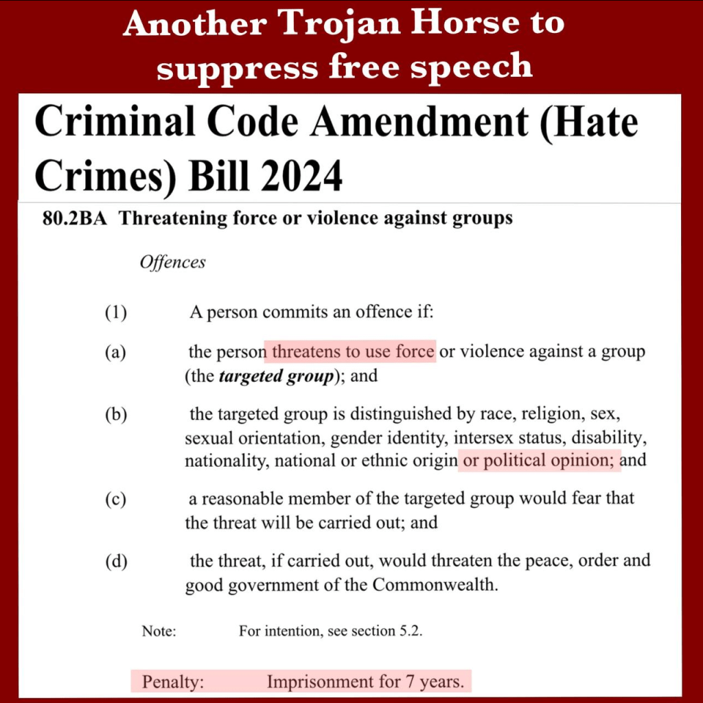 The so-called “hate crimes” Bill is just another Trojan Horse cunningly designed to enable big government to suppress free speech.
