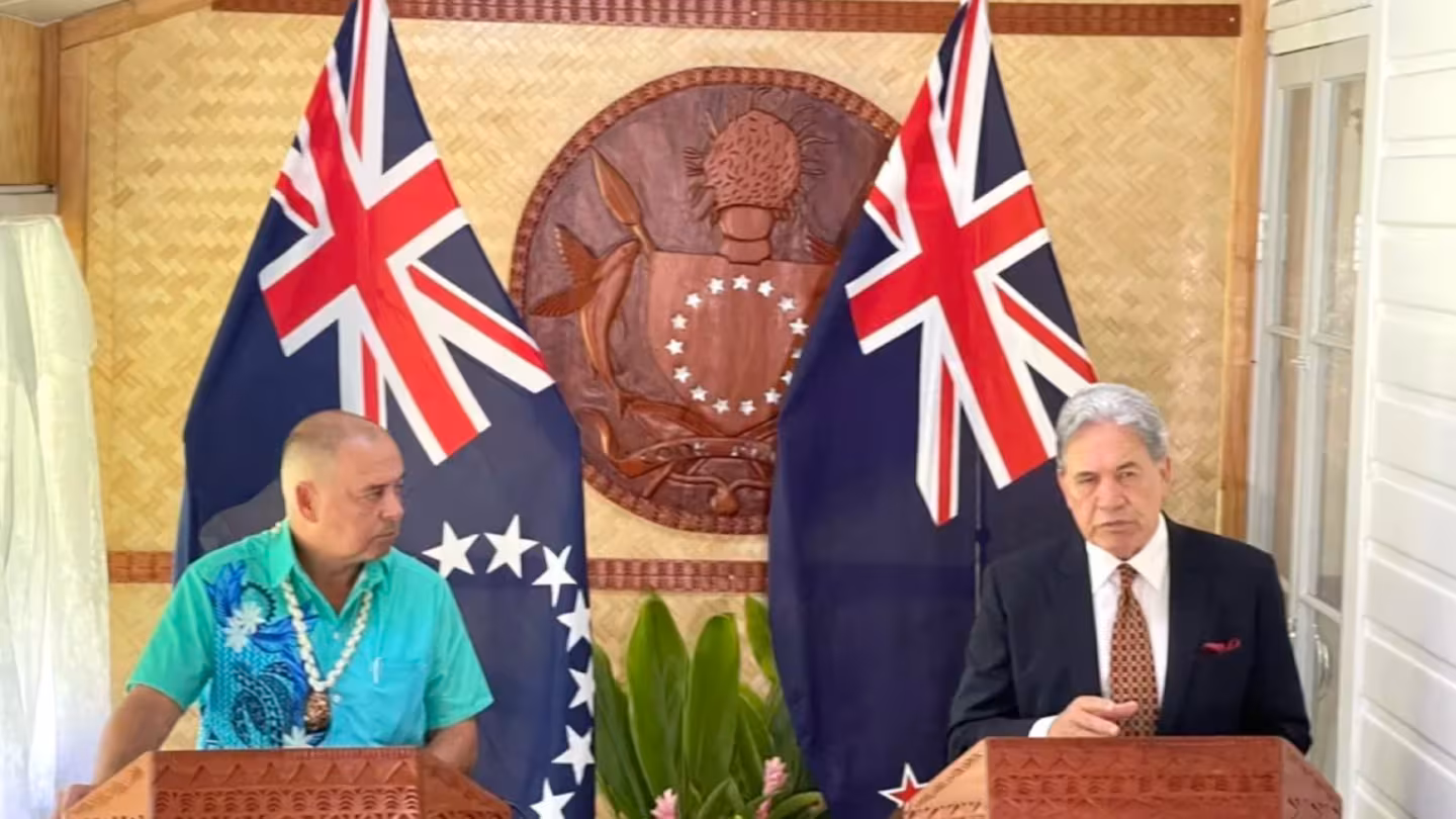 Cook Islands Prime Minister Mark Brown, left, and Foreign Affairs Minister and Deputy Prime Minister Winston Peters in Rarotonga.