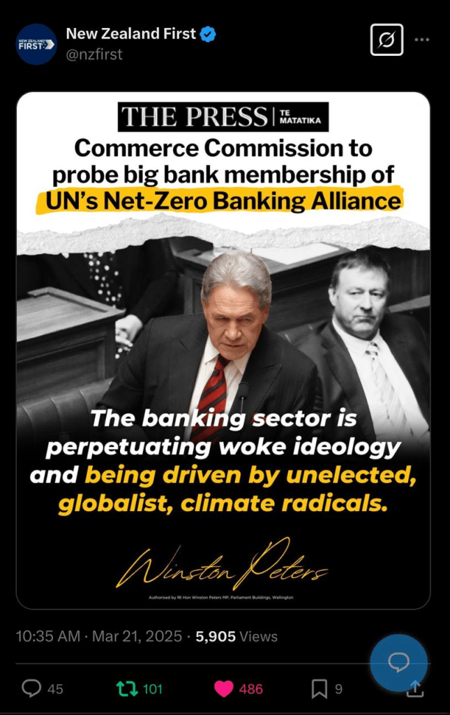 perpetuating woke ideology and being driven by unelected, globalist, climate radicals – Winston Peters