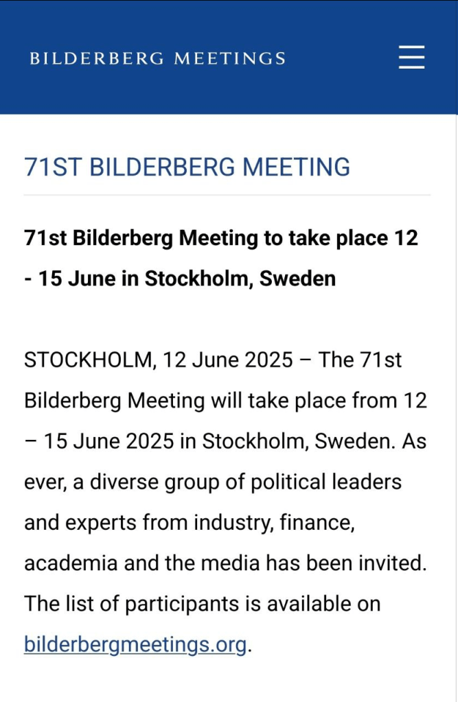 https://www.infowars.com/posts/71st-bilderberg-meeting-agenda-and-attendees-revealed The globalist who are in pre meditated crimes against humanity gather They need to go to jail directly to jail and not get a free pass out of jail – Their big crisis to bring abut their outcomes rbg 7 fold ret 7 fold 7000+ x 3 fold let the globalist fall and fail let the globalist be arrested for their pre meditated crimes against god creation and humanity