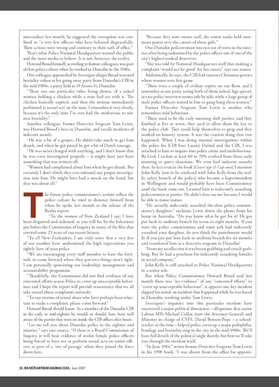 Back in 2007, Investigate Magazine printed an explosive piece into allegations of widespread police sexual misconduct reaching as high as the then police commissioner Howard Broad.