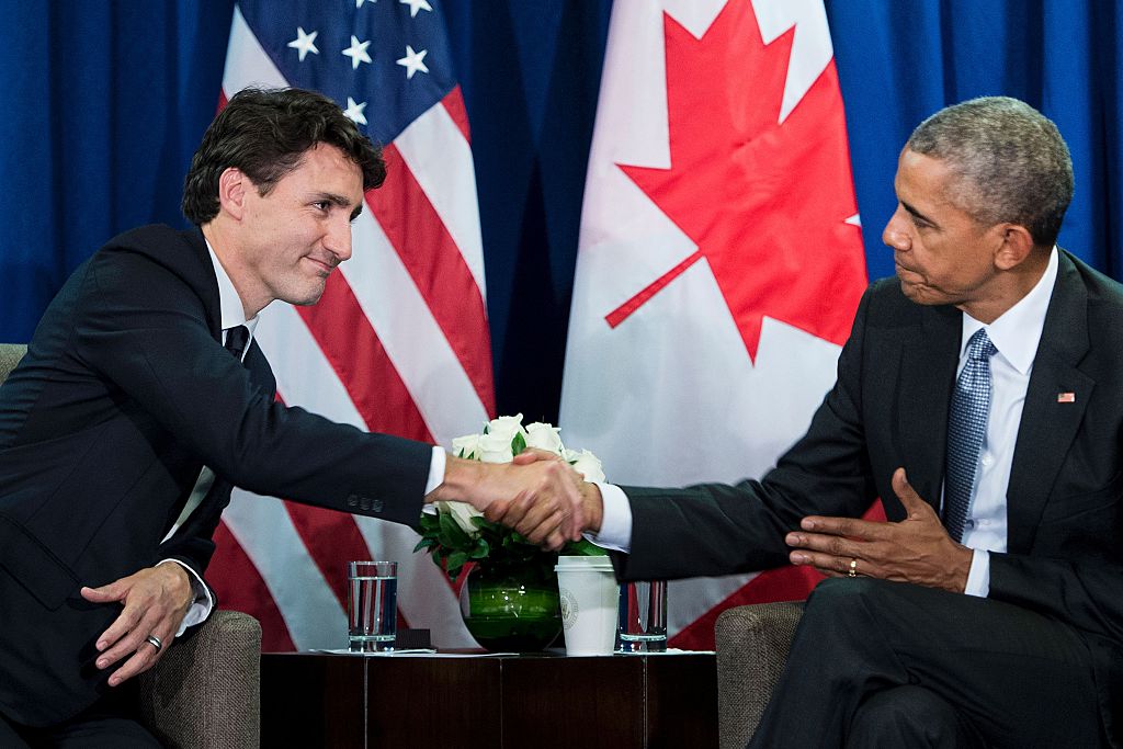 Canada’s Prime Minister Justin Trudeau (L) and US President Barack Obama shake hands at the end of a bilateral meeting at the Asia-Pacific Economic Cooperation summit at the Lima Convention Centre November 20, 2016 in Lima, Peru. Asia-Pacific leaders were expected to send a strong message in defense of free trade on November 20 as they wrap up a summit that has been overshadowed by US President-elect Donald Trump’s protectionism. / AFP / Brendan Smialowski (Photo credit should read BRENDAN SMIALOWSKI/AFP/Getty Images)Tony Blaid war crimes